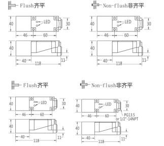 Thread size / 螺紋尺寸: Q40 屏蔽式 / Q40 非屏蔽式
