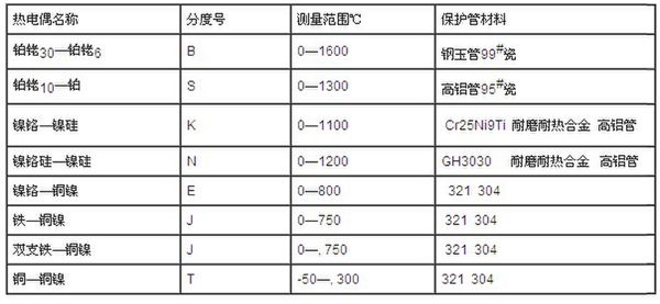 熱電偶允差: JJG351-96
