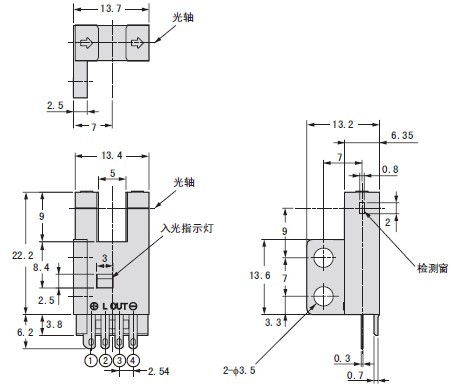 ● “L”引腳與“+”引腳相接時,輸出狀態(tài)即時轉(zhuǎn)換如:受光時指示燈不亮、“out”無輸出電流,相接后指示燈不亮、但“out”有輸出電流。其它各引腳接線錯誤時,傳感器不工作,但傳感器本身不會損壞。